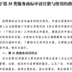 为深入贯彻落实《“十四五”国家知识产权保护和运用规划》关于“加强知识产权源头保护,强化知识产权申请注册质量监管”的部署,帮助相关市场主体正确理解《类似商品和服务区分表》第35类服务项目的内涵和外延,了解相关服务分类项目本意,合理提出商标注册申请,国家知识产权局组织编写了《关于第35类服务商标申请注册与使用的指引》,供相关市场主体参考使用。